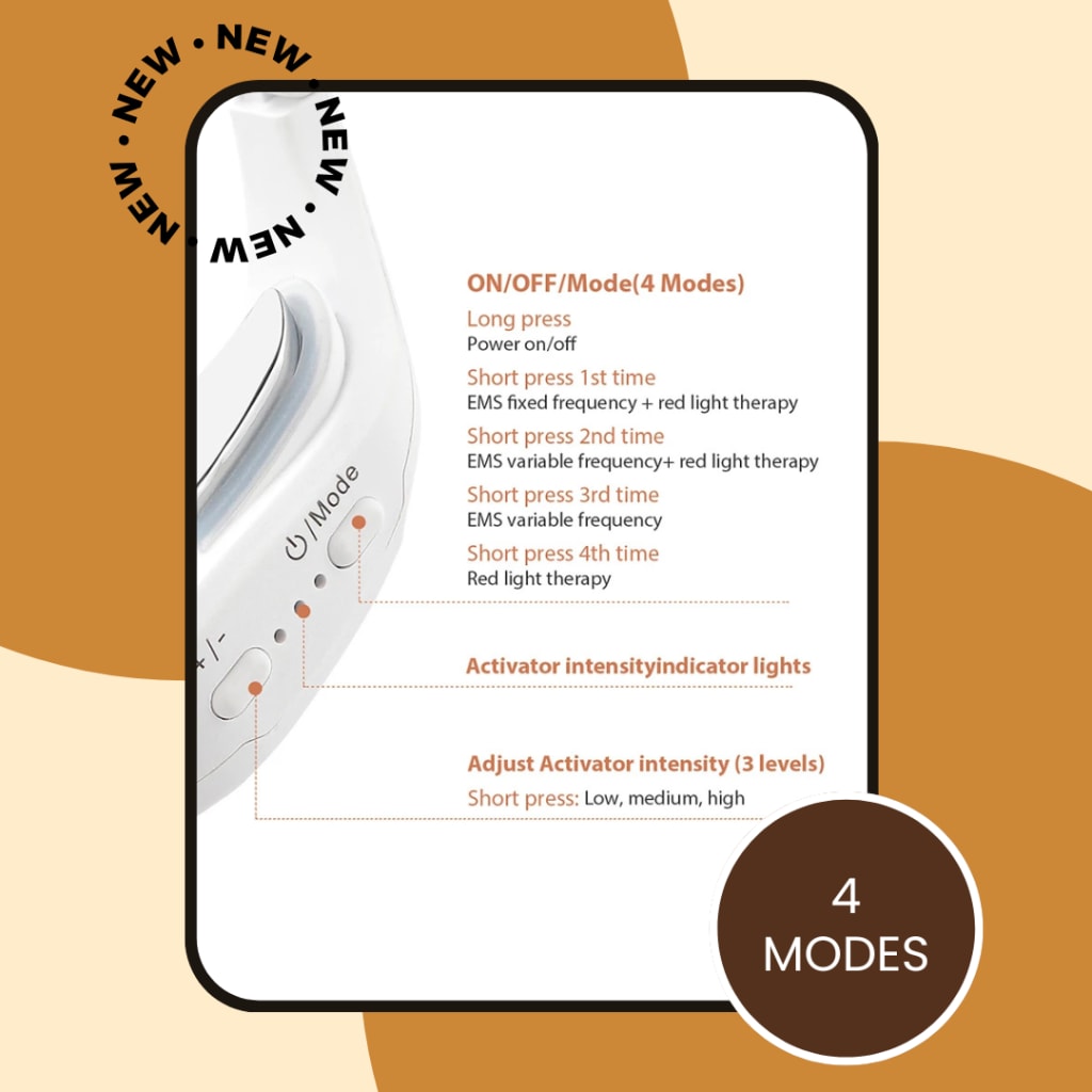 Combines skin-safe red light therapy, three-level EMS micro-currents, and gentle vibration to target under-eye concerns. Wear it hands-free while you read, watch TV, or relax.